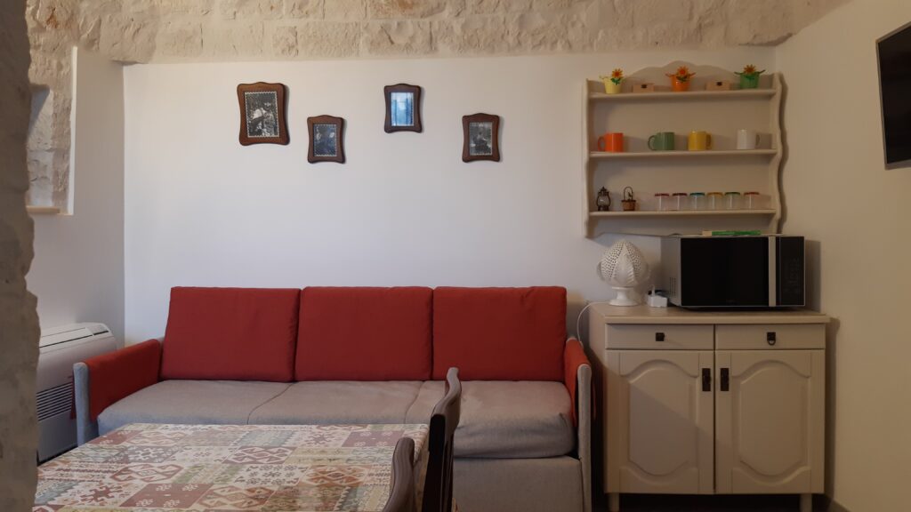Questo alloggio, originariamente era una cantina dove si pigiava l’uva e si stagionava il formaggio. Dispone di un letto matrimoniale e divano letto a un posto.